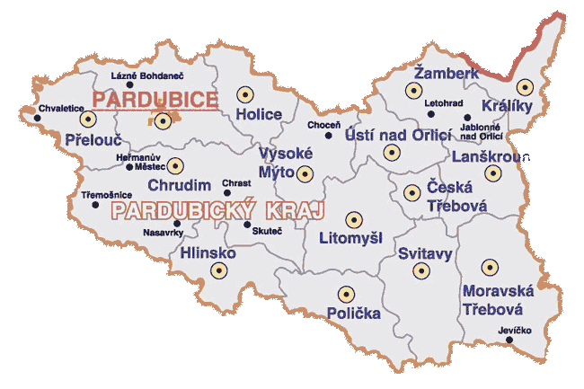 | Pardubice | Pardubice, Přelouč, Holice, Ústí nad Orlicí, Žamberk, Králíky, Chrudim, Vysoké Mýto, Česká Třebová, Litomyšl, Lanškroun, Hlinsko, Svitavy, Polička, Moravská Třebová, Chvaletice, Lázně Bohdaneč, Heřmanův Měštec, Třemošnice, Nasavrky, Chrast, Skuteč, Choce??, Letohrad, Jablonné nad Orlicí, Jevíčko |